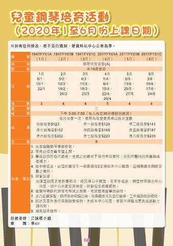 班       別                          鋼琴培育活動(A)