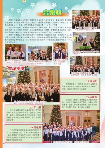 本校今年繼續由初級合唱團在灣仔大有廣場舉行聖誕頌歌表演,頌歌當中亦加入電