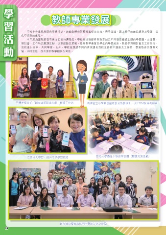 回校進行分享,共同學習。此外,學校還邀請不同的資深講者到校主持校本講座及工作坊,豐富教師的專業知