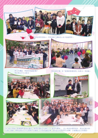 在探訪長者活動中,同學預備了禮物及心意卡送給長者。 長者作導遊,帶領同學細遊灣仔, 「長幼椅子舞」是「衛理軒長者學苑」的其中一項活動。 藉此傳承文化及歷史。 在《有心學校》創意服務資助計劃中,我們在學校天台建立了「長幼中草角」,加上特別的課程設計,長幼透過分享、 活動、遊戲、慢食品嚐及戶外活動等不同環節,以達致園藝治療,讓長者及同學們身心舒暢,更能體會生活的意義。 38