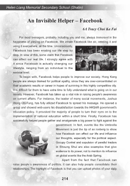 To begin with, Facebook helps people to improve our society. Hong Kong
