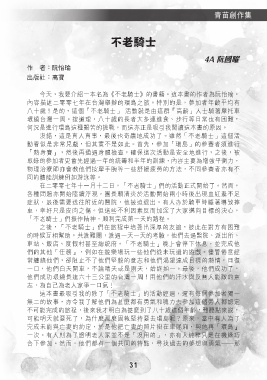 今天,我要介紹一本名為《不老騎士》的書籍。這本書的作者為阮怡瑜,