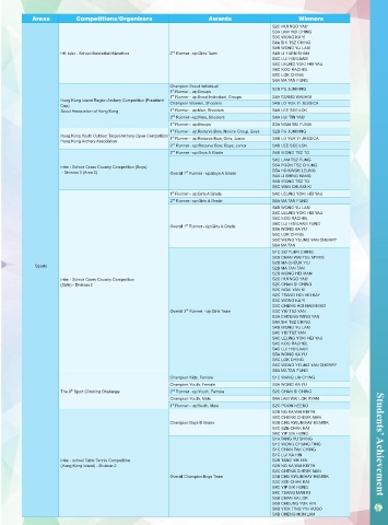- Division 3 (Area 2) Overall 1 Runner - up:Boys A Grade S5A HO KWOK LEUNG