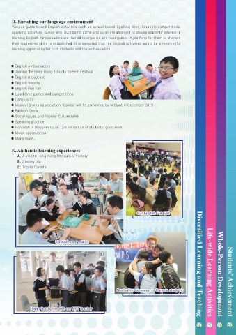 Graduation ceremony of Canada study trip Life-wide Learning Activities Whole-Person Development Students’ Achievement