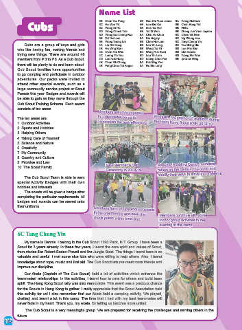 members from P.3 to P.6. As a Cub Scout, 4D Lee Nok Hang 5D Leung Chun Hei 6E Ip Chun Ming