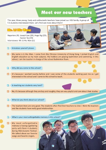 This year, three young, lively and enthusiastic teachers have joined our HSS family. A group of