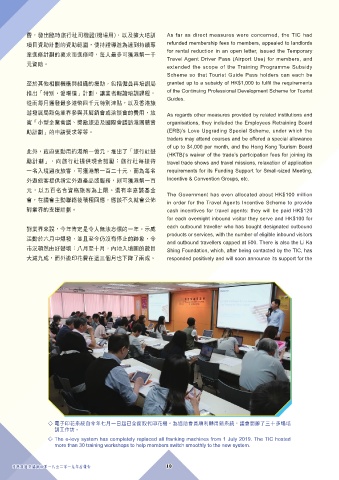 費,發出臨時旅行社司機證(機場用),以及擴大培訓 As far as direct measures were concerned, the TIC had