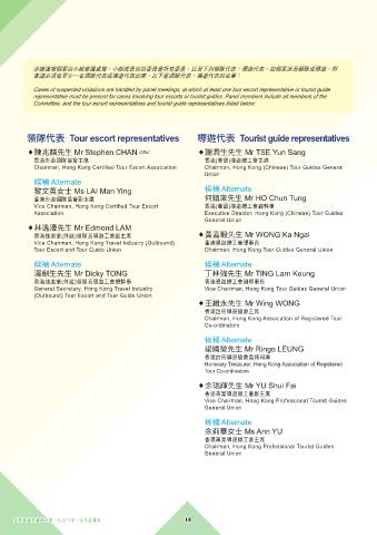 Committee, and the tour escort representatives and tourist guide representatives listed below: