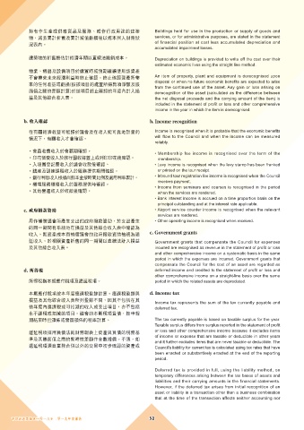 延收入,於相關資產折舊的同一期間以直線法計入損益 Government grants that compensate the Council for expenses
