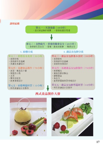 單元三:廚藝基本食材(30小時) 單元三:甜品及包餅基本食材(30小時)