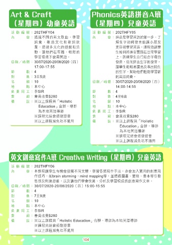 備 註 : ※以上課程與「Holistic Education」合辦,導師為本地英語導師