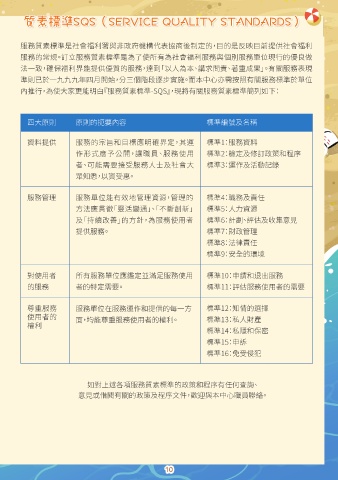 內推行,為使大家更能明白『服務質素標準-SQS』,現將有關服務質素標準簡列如下: