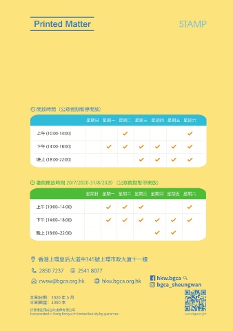 hkw.bgca bgca_sheungwan 印刷日期:2020 年 5 月 印刷數量:1000 本