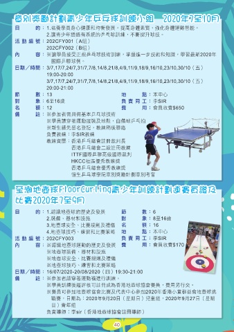 章別獎勵計劃青少年乒乓球訓練小組 2020年7至10月