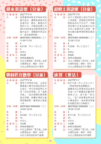 對 象 : 6至7歲 升小一至小二 對 象 : 7至8歲 升小二至小三