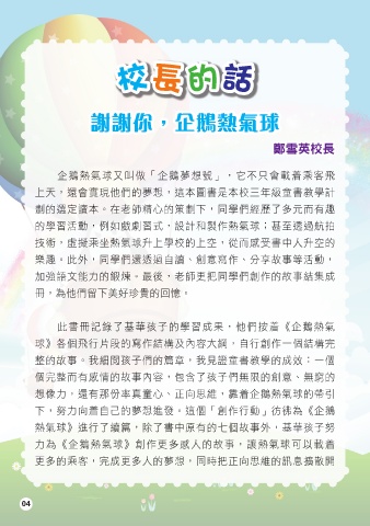 的學習活動,例如戲劇習式,設計和製作熱氣球;甚至透過航拍