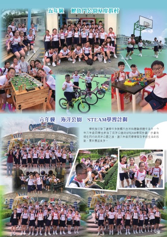 五年級 鯉魚門公園及度假村 六年級 海洋公園 STEAM學習計劃 學校旅行除了讓學生多接觸大自然和體驗群體生活外,今 年六年級同學也參加了海洋公園的STEAM學習計劃,計劃有 師生同行的海洋公園之旅,讓六年級同學學習及掌握生活的技 能,實在獲益良多。 27