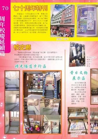 為慶賀70周年校慶,本校設置了校史廊,並分為兩部分: