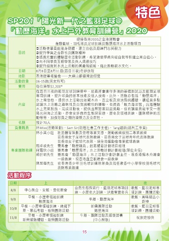 專項訓練,提升球員的基本技術及個人技術。此外,活動亦包括「動歷海洋」
