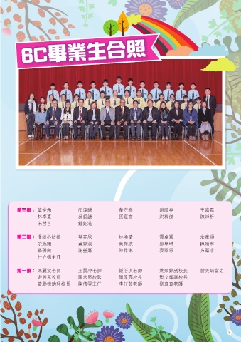 6C畢業生合照 第三排: 葉俊希 邱淳曦 黃守泰 趙國堯 王嘉霖 林卓熹 吳哲謙 孫嘉言 洪梓傑 陳焯桁 朱哲言 鍾鉦澔 第二排: 潘綺心姑娘 莫卉欣 林浠晴 譚卓穎 余牽潁 余施頴 黃綽淇 莫梓欣 鄭卓琳 陳婧琳 楊蒨茵 謝瑩熹 陳雅琳 麥翠恩 方蓁泳 甘立德主任 第一排: 馮麗雯老師 王震冲老師 鍾倍淇老師 姚榮錦副校長 曾美娟會吏 余勝意牧師 陳永堅校監 顏偉亮校長 樊文輝副校長 黃勵德助理校長 陳倩雯主任 李芷茵老師 劉真真老師 9
