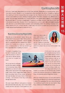more about Canadian’ lifestyle. In my homestay family, there were three kids. At fi rst, I thought we might not