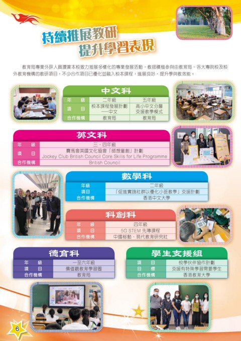外教育機構的教研項目,不少合作項目已優化並融入校本課程,進展良好,提升學與教效能。