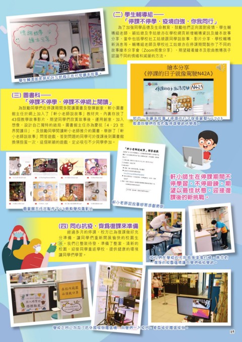 新消息等。輔導組老師及學校社工姑娘亦在停課期間製作了不同的