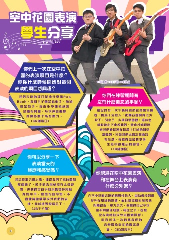 我 們表 演 的項 目是 流 行樂 隊 Po p 你們在練習期間有