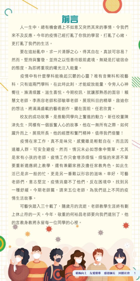嚮往,滌清煩囂,滋生喜悅。今期校訊,就讓那熟悉的面容:賴