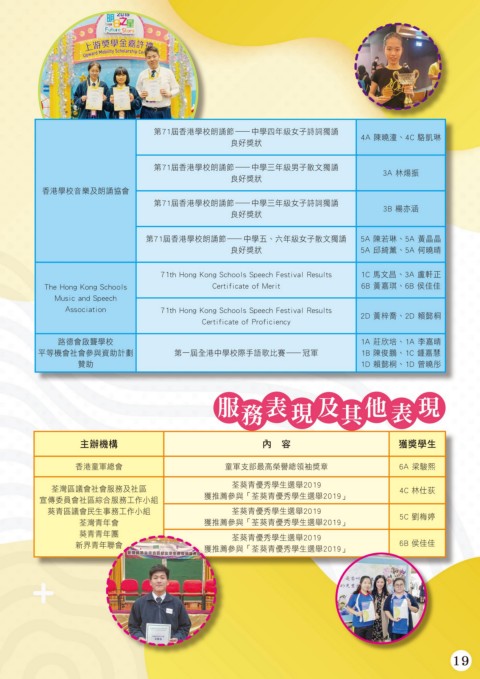 71th Hong Kong Schools Speech Festival Results 1C 馬文昌、3A 盧軒正