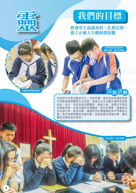 經班。此外,本校設有校園團契、細胞小組、基督少年軍及