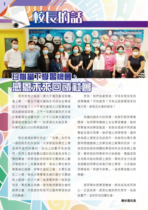 社會動蕩而流離失所,六千八百萬兒童因家 持續四個多月的停課,老師仍堅持專業