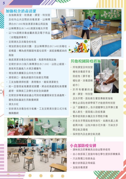 • 工友加勤清掃校園、清理積水,確保清潔衛生