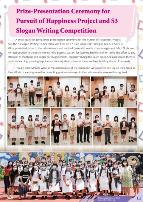 and the S3 Slogan Writing Competition was held on 17 June 2020. Our Principal, Ms. LEE Siu-yuk,