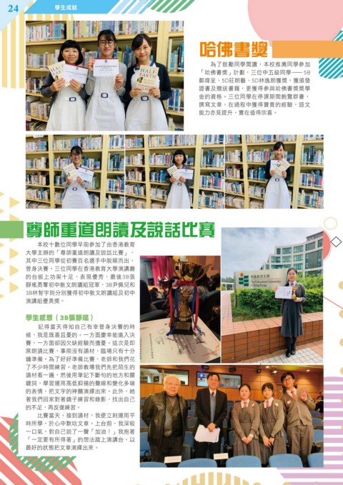 證書及贈送書籍,更獲得參與哈佛書獎獎學