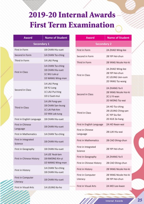 First in Form 1B CHAN Hiu-suet First in Form 2A ZHAO Wing-lee