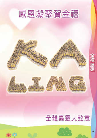 感恩凝聚賀金禧 感恩凝聚賀金禧 金禧展翅 全體嘉靈人致意 全體嘉靈人致意 34