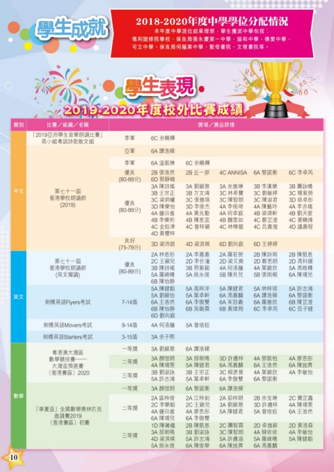 (2019) 優良 3D 陳樂怡 3D 李俊杰 4A 李倚琦 4A 陳藝玲 4A 李亦瑤