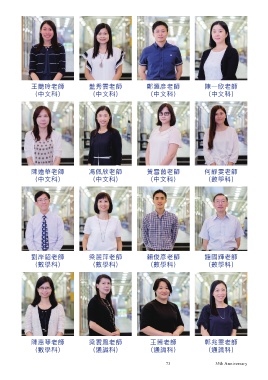 王艷玲老師 藍秀雲老師 鄭滙彥老師 陳一欣老師 (中文科) (中文科) (中文科) (中文科) 陳遠華老師 馮佩欣老師 黃雪茵老師 何靜雯老師 (中文科) (中文科) (中文科) (數學科) 劉岸韶老師 梁麗萍老師 賴俊彥老師 鍾國輝老師 (數學科) (數學科) (數學科) (數學科) 陳惠琴老師 梁雲鳳老師 王茜老師 郭兆雯老師 (數學科) (通識科) (通識科) (通識科) 73 35th Anniversary