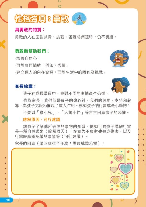 家長的回應(請回應孩子任務:勇敢挑戰恐懼):