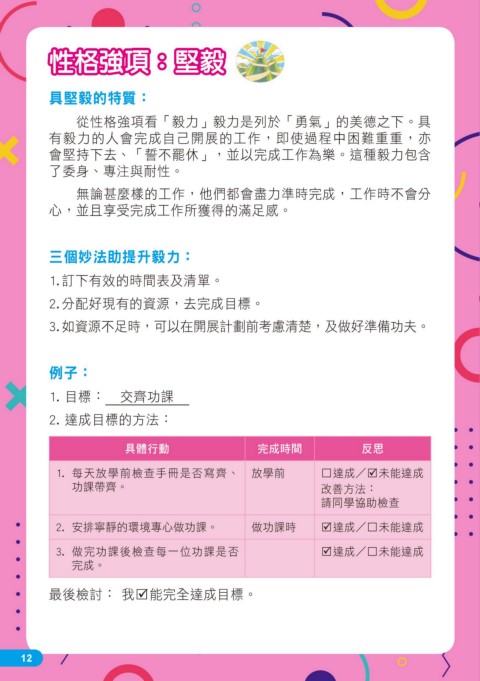 2. 安排寧靜的環境專心做功課。 做功課時 □達成/□未能達成