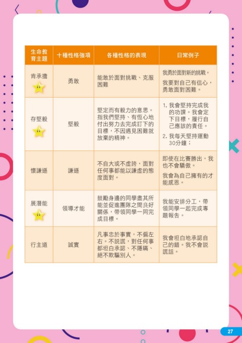 堅毅 付出努力去完成訂下的 己應該的責任。