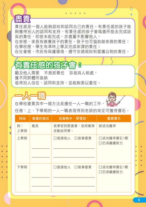 任務:上、下學期的一人一職表現得到老師的肯定可獲得寶石。