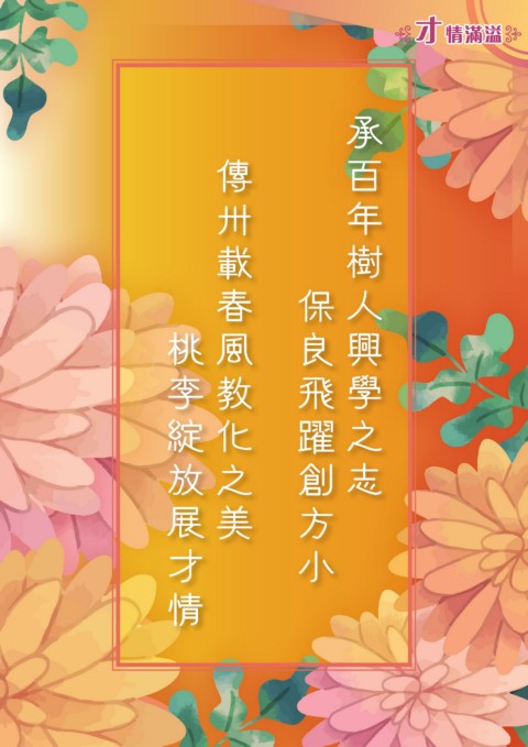 才情滿溢 承 傳 百 卅 年 載 樹 春 保 人 桃 風 良 興 李 教 飛 學 綻 化 躍 之 放 之 創 志 展 美 方 才 小 情
