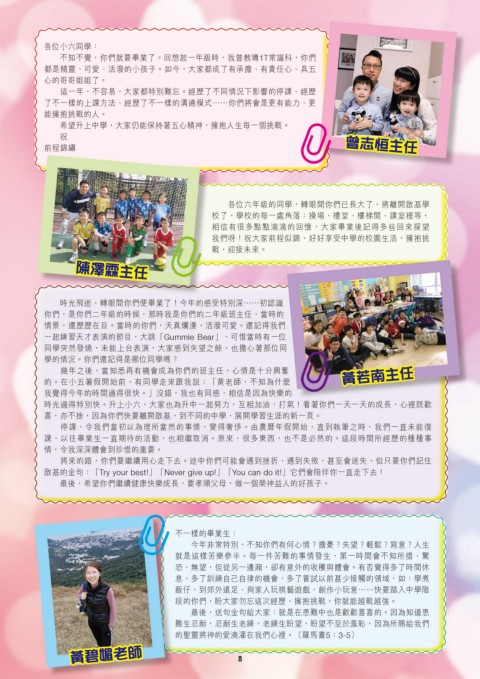 時光過得特別快。升上小六,大家也為升中一起努力,互相加油,打氣!看著你們一天一天的成長,心裡既歡