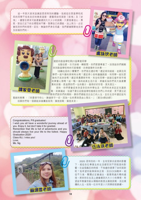 譚家雯老師 戰,荊棘滿途,但請不要忘記啟基學校植根在你們心中的愛,更不要忘記
