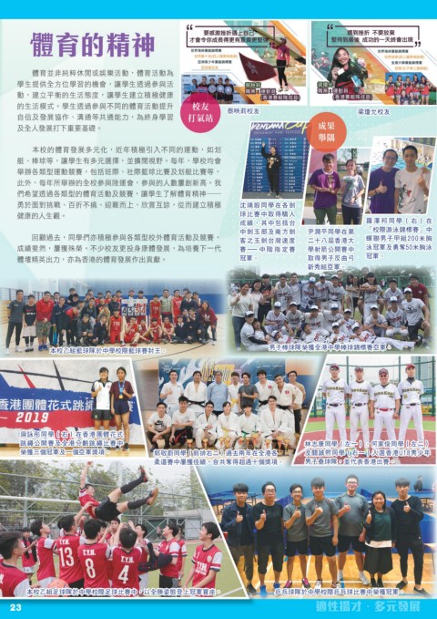 艇、棒球等,讓學生有多元選擇,並擴闊視野。每年,學校均會
