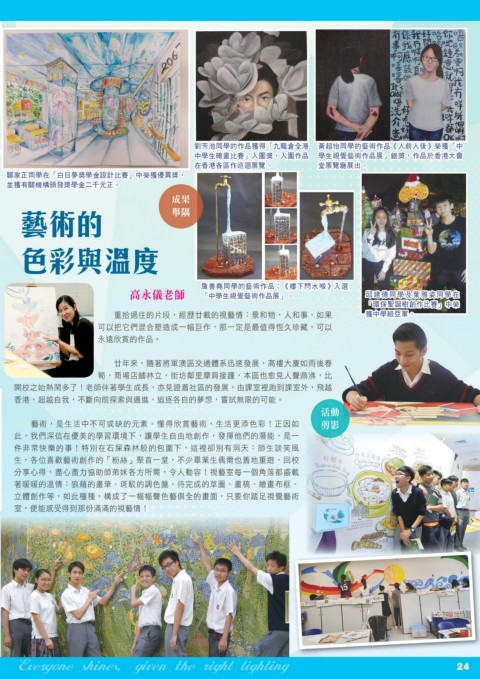 此,我們深信在優美的學習環境下,讓學生自由地創作,發揮他們的潛能,是一