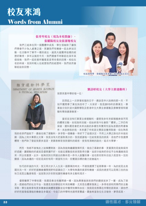 友。透過他們的社交平台,我還是見到學校近年來的轉變,尤其是在體育發展上。多得老師和同學們的主動
