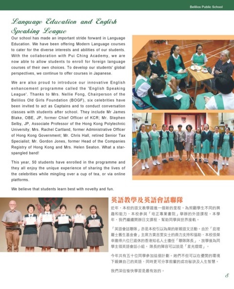 「英語會話聯隊」亦是本校引以為榮的新穎語文活動。由於「庇理